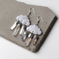 These handmade cloud pendants are on sterling silver hook earrings! They contain real quartz crystals.