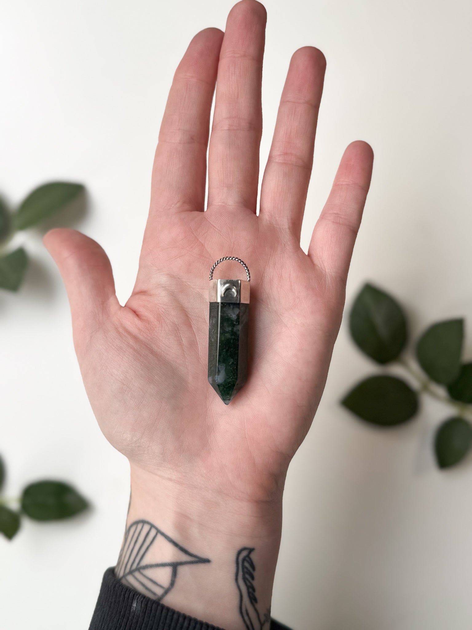 You will receive this Moss Agate pendant on an 18" Stainless Steel chain.