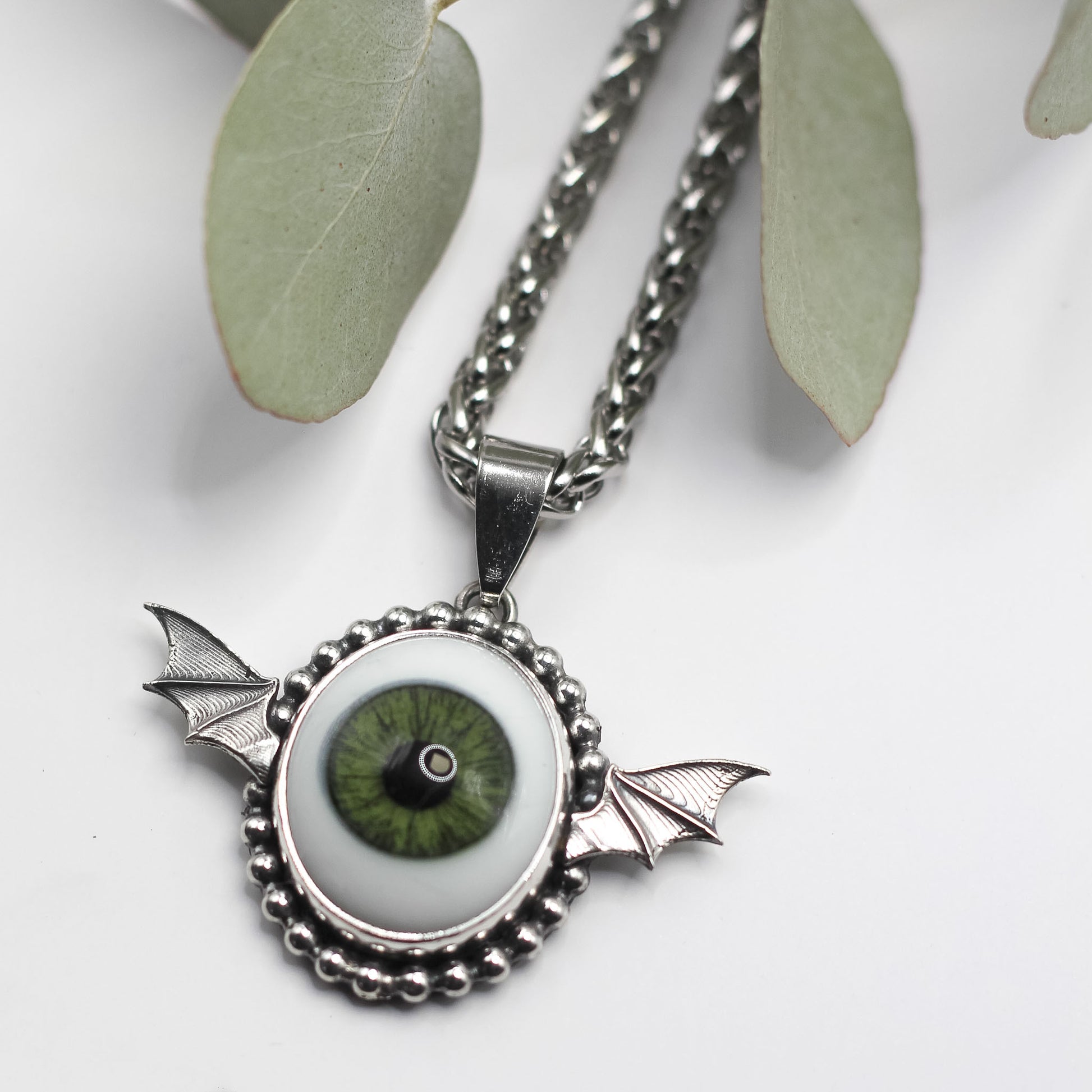 This Sterling silver, handmade pendant contains one 20mm glass eye