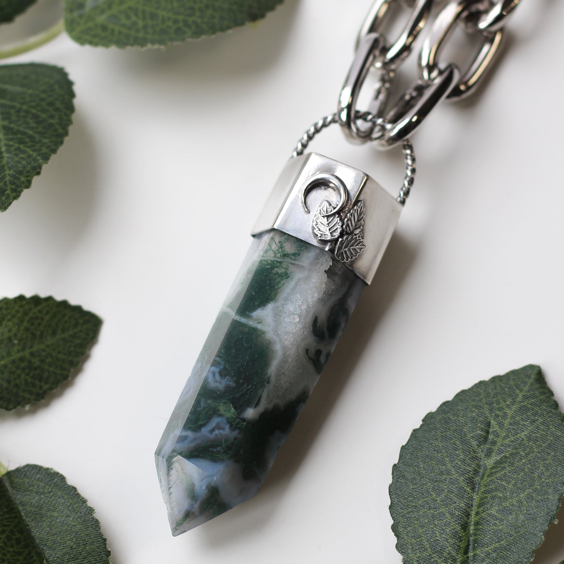 You will receive this Moss Agate pendant on an 18" Stainless Steel chain.