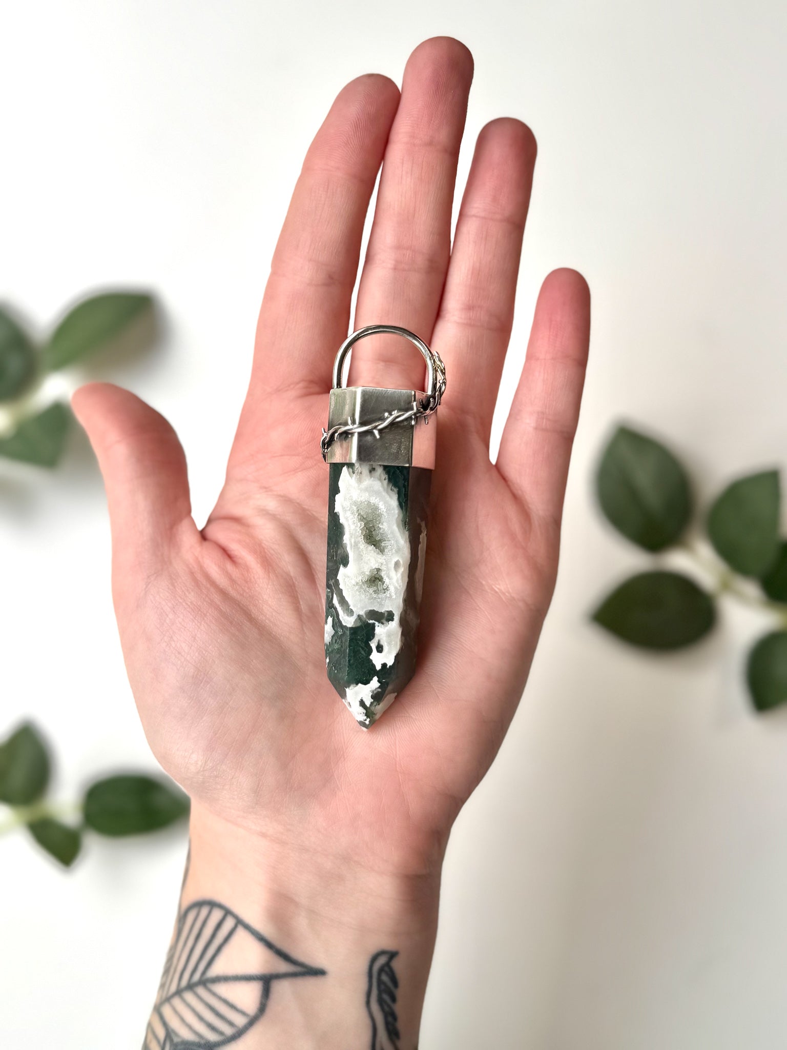 This XL Moss Agate necklace is 100% handmade from Sterling Silver in our Workshop in the heart of Yorkshire.