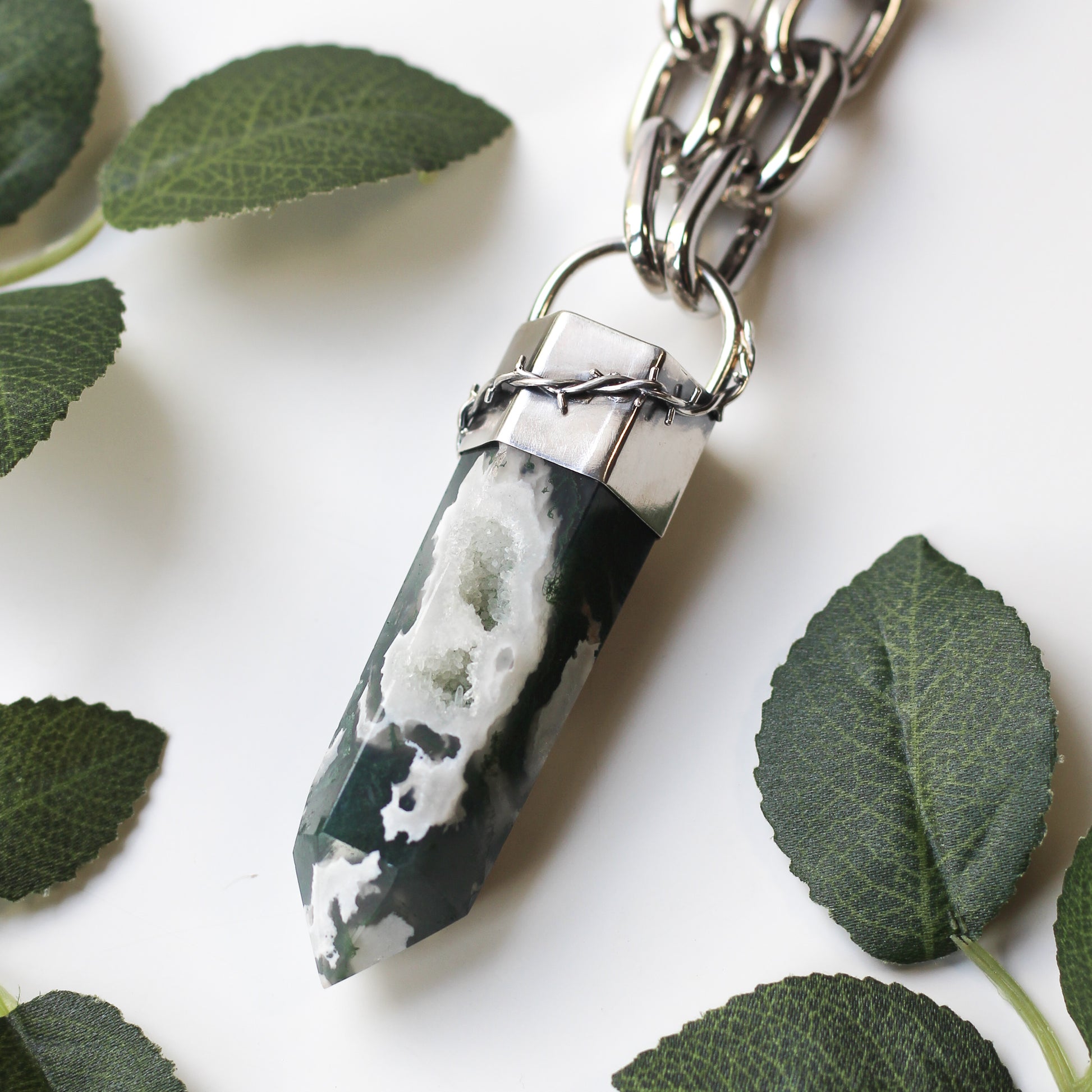 You will receive this Moss Agate pendant on an 18" Stainless Steel chain.